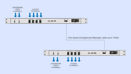 The CL-24 is ideal for transmitting 2 channels of base band video and up to 4 channels of audio on one fibre optic cable.