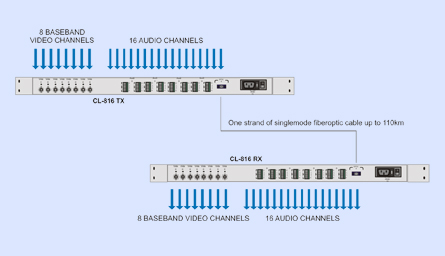 - 8 Channel Baseband Video and 16 Channel Audio Transmission